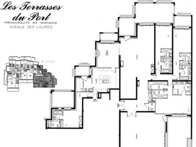 The apartment located on a high floor is composed as follows: a spacious entrance hall with cloakroom, a guest toilet, a majestic living room opening onto a terrace, a living room with office area and terrace, a dining room, a fitted and equipped kitchen with loggia and laundry room, Three bedrooms with dressing room and full bathroom, a service room with bathroom and terrace.